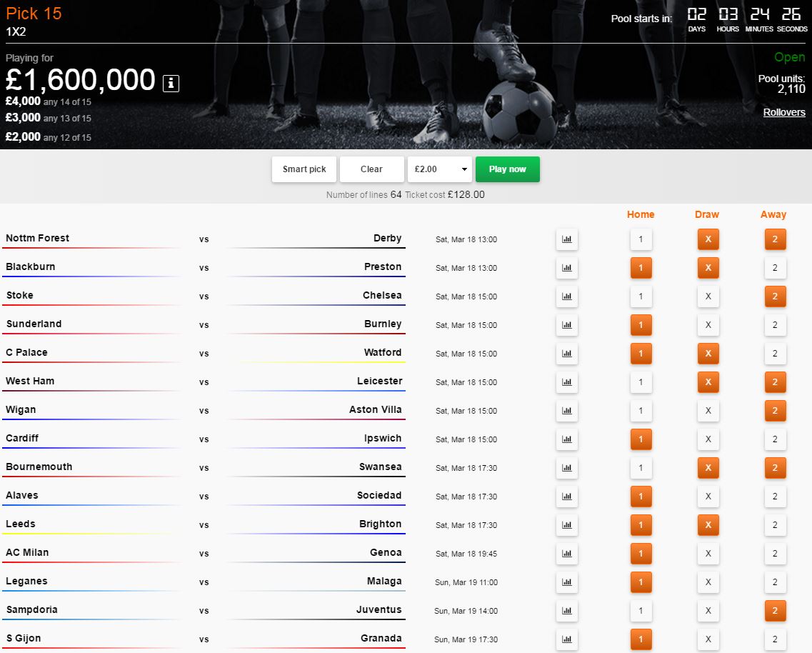 £,1600,000 Pick 15 Coupon