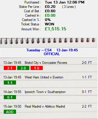 This small stakes punter managed to turn 60p into just over £1,500 by playing a 20p Pick 4 line.
