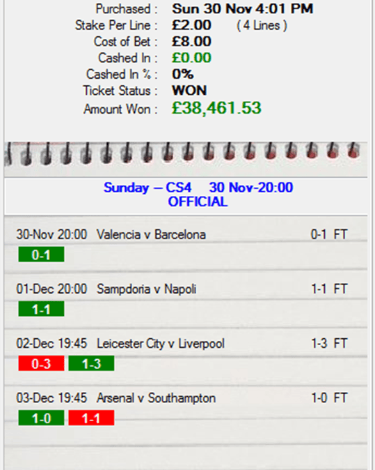This rollover Pick 4 punter scooped a massive £38,461.52 for just an £8 spend, all thanks to a 89th minute Alexis Sanchez winner for Arsenal!