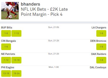 This is a hard game to call with both teams in poor form. The Broncos have no offense and how the game goes all depends on whether their defense turns up. The Bengals have a huge positive with the elite receiver AJ Green. It will be a low scoring game and either team can win this, albeit by a small margin.