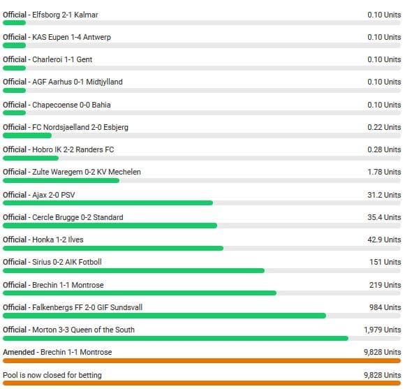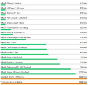 It was after the eighth leg, the Belgian Pro League encounter between Zulta Waregem and KV Mechelen, that they received a tantalising Cash Out offer. With some tricky results in the pool up to that point, the 9,828 units that initially entered had been decimated, leaving just 1.78 remaining.