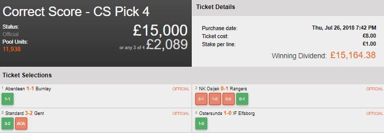 Teams starting out in the Europa League this season are going to have to play a huge amount of games to see some success for their efforts. Not the case for this punter. They threw £8 at Thursday night’s Pick 4 and by Saturday an account balance refresh would see a winning payout of £15,164! What a win!