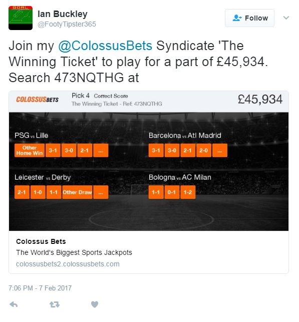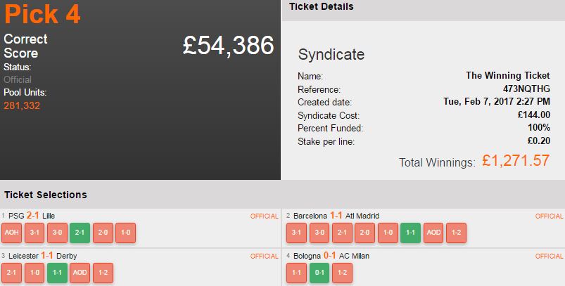Just ONE week in to Colossus Syndicates and we have a memorable winning Syndicate! And the clues were there! On the eve of our MASSIVE Pick 4 rollover, this shrewd manager created their ticket with a confident Syndicate name of ‘The Winning Ticket’! Playing with a 20p stake per line, their syndicate was shooting for a potential £54,386 bumper Pick 4 rollover jackpot.