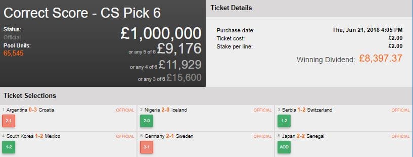 We are nearly two weeks into the World Cup and it hasn’t exactly been kind to punters! Mexico beat Germany, Argentina have been hopeless and Brazil drew their opening game. While the likes of Japan and Senegal have put themselves in good stead so far. It is almost impossible to see a favourite to be World Cup Winners. Nonetheless, in the past seven days, we have had some large winning figures! Here they are.