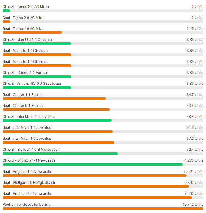 When Parma took the lead in the first half, the player would have been praying for a Chievo goal to seal a third 1-1 correct scoreline and was happily obliged in the 66th minute when Riccardo Meggiorini scored the equaliser. There were no such worries in the French game, Amiens and Strasbourg playing out a goalless draw to keep the ticket going into the sixth leg.
