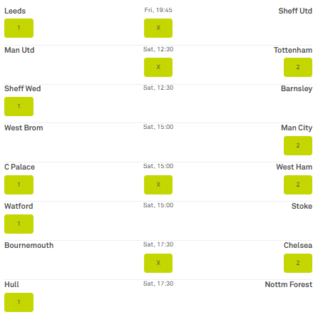 Right in the middle of the ticket, this is the real banana skin between two sides in desperate need of the points. Palace are rock bottom and were humiliated by Bristol City in midweek but are a different proposition altogether with Zaha involved, and he could wreak havoc against a pretty dire Hammers defence.