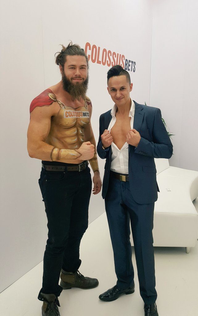 Walking around with Mr Colossus yesterday he was a very popular man with both men and woman alike. He raised the eyebrows of more than a few promo girls. But we think this was down to his glorious hair and fantastic body paint.