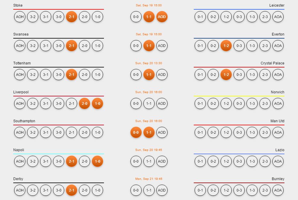 I take Stoke to win this 2-1, but you obviously can’t rule out a draw. So given Leicester have scored in all their games this season I am adding in 1-1 and AOD (Any Other Draw).