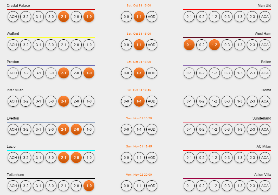 I don’t have a strong opinion on this to be honest, but Inter won this fixture 2-1 last season, so I will take 2-1 and 1-1 as my selections here.