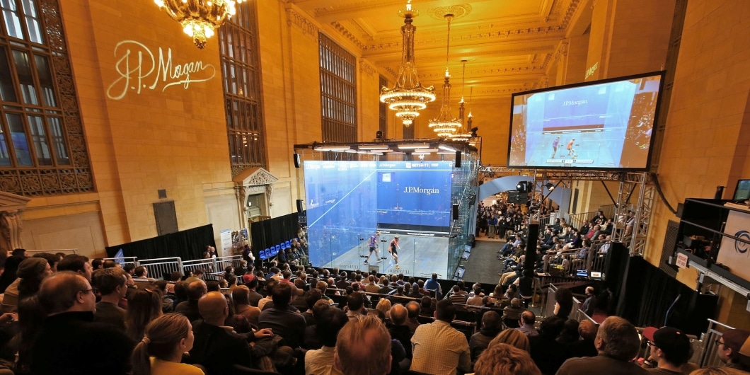 The Tournament of Champions is an international Squash tournament that dates back all the way to 1930. More recently though the event has been staged annually in the Vanderbilt Hall in New York’s Grand Central Terminal. A specially built squash court with four glass walls is placed in the middle of the hall giving the prestigious trophy a poetic backdrop. Squash has also been played in a one time event at the Boston Symphony Hall in Massachusetts, USA.