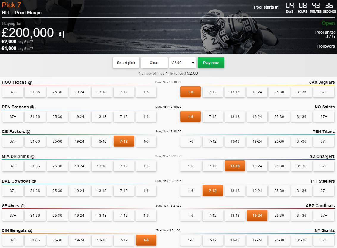 It was a case of so close yet so far for my selections on last week’s NFL Pick 7 as I nailed five results but managed to call just two margins correctly. But, to paraphrase Chumbawamba, when I get knocked down, I get back up again so here I am to try my hand at the £200,000 jackpot – check out my thoughts below.