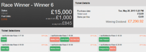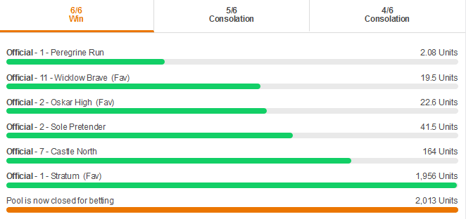 A solo player landed a dream win from the Boosted £15,000 Win 6 pool at Ballinrobe on Tuesday, turning a £12 stake into an incredible £7,290.92.