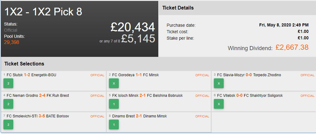 The action continued on Saturday and it was very much a case of Groundhog Day as the player correctly selected a draw (Slavia Mozyr vs. Zhodino) and an away win (Neman vs. Rukh Brest) which successfully won despite the away side receiving a red card.