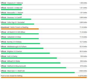 11,074 units had entered the pool but just one remained. Having managed to find all 14 results, the player secured a sensational £128,959 return on their £384 investment, a 335x increase.
