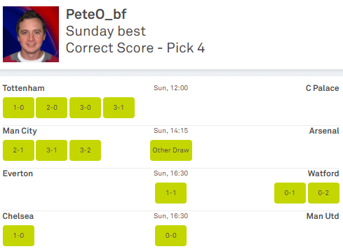 Tottenham v Crystal Palace (Sun 12:00)