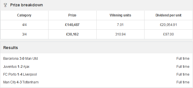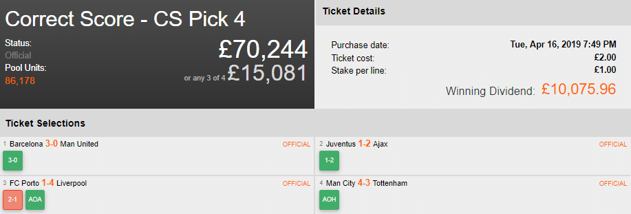 Whilst Tottenham and Liverpool fans would have woken up in a pretty good mood on Thursday morning, their celebrations will have been modest compared to that of one player who is over £10,000 richer after correctly predicting the score in all four Champions League games.