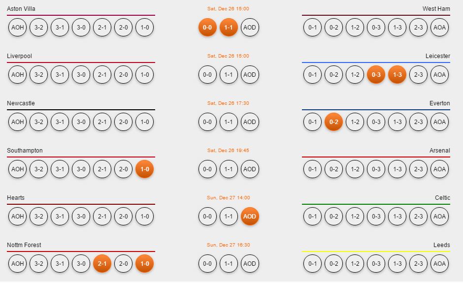 Unlikely to be a Christmas cracker at Villa Park so I’ll plump for a dour 0-0 or 1-1 draw. Sorry to be the bearer of bad tidings…!