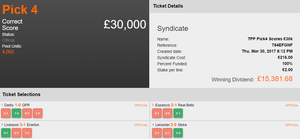 This latest win will make the rush for TwoPoundPunt’s Syndicates even greater!