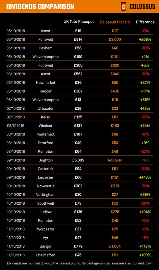 UK TOTE PLACEPOT VS COLOSSUS PLACE 6 – WEEK 13 DIVIDENDS COMPARISON