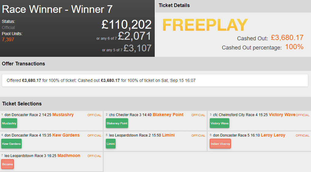 If you haven’t been placing your FreePlay into our Saturday 7 then the below ticket should provide sufficient inspiration to make sure you get involved next weekend!