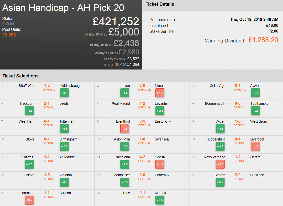 The new Asian Handicap Pick 20 Rollover kicks off this Friday with the prize currently at £425,000 and growing – see it here.