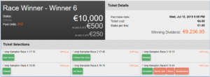 An incredible story unfolded in the £20,000 Win 6 at Kempton Park on Wednesday, as a €4 ticket returned €9,236.85 for one of our players.