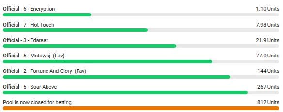 Things were going well and improved further in the 18:45 when Edaraat landed a fourth straight winning leg for the player. It certainly wasn’t straight sailing as the gelding overcame a sluggish start to impose himself on the field in the closing stages. Having been held up, he needed to take a wide line to overtake the pack before suddenly veering wildly left with a furlong to go. It looked as though his race was run but Jim Crowley managed to straighten him up and, with plenty of gas still in his tank, he managed to nick a victory.