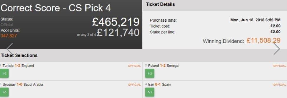 There were not any outrageous results in our Pick 4 rollover, but it was still a HUGE pot, so there was plenty of cash to be shared if there were multiple winners. This meant that this player managed to win £11,508 off a £2 bet!