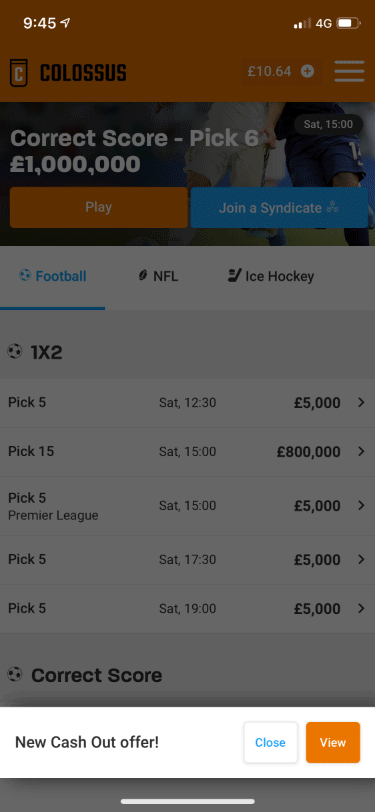 Log in to your account while the pool is in progress and check for Cash Out offers under “My tickets”. When logged in, you will also receive a pop up notification every time you have a new Cash Out offer. Clicking on this notification will direct you to “My tickets” where you can see the offer.