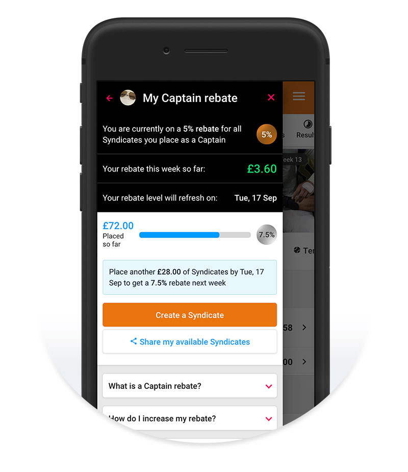 Just create and fill Syndicates and we’ll do the rest! Once your Syndicates are filled, they are placed into our pools and automatically count towards your Captain rebate, which we calculate and apply to your account every Monday.