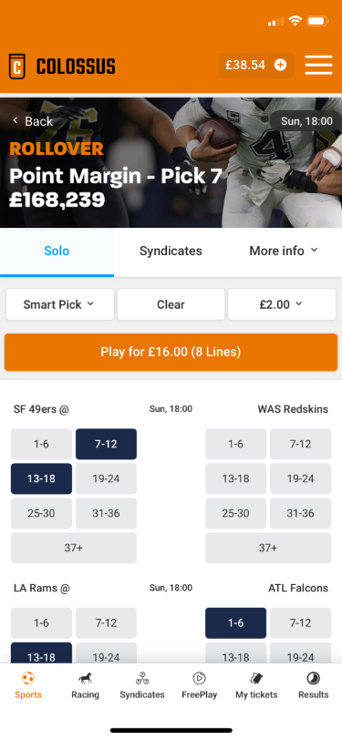 For example, selecting LA Rams to beat ATL Falcons by a 13-18 point margin means that you expect LA Rams to score anywhere from 13 to 18 points more than ATL Falcons and win the match.