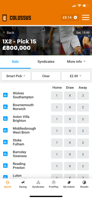 If you narrowly miss picking every winner in a Colossus jackpot, you can win (or share in the case of multiple winners) a consolation prize. You can see the consolation prize(s) available for a pool by clicking on “More info” in the pool header.